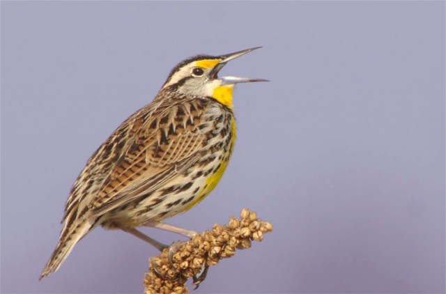 Sometimes it can be difficult to create a classic image of a subject, and do something different at the same time. With male Eastern Meadowlarks, the traditional shot is a bird on a perch, singing, with a little or a lot of that famous yellow breast showing. I have been fortunate to make my share of those shots. My first photo below is one of them. How about changing the classic just a little bit. Maybe a bird singing on the ground with every inch of that yellow breast showing in spectacular form. Want to take it one step farther? A Meadowlark with its back to the camera. My specialty. You see that this bird is indeed singing. There is more than one way to tell the story of an animal.