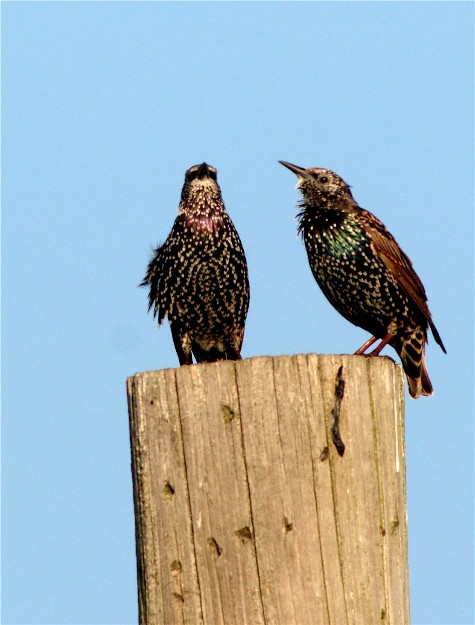 Starlings are very definitely a flock bird and making pictures with two or more birds is easy. Below we have that scenario.
