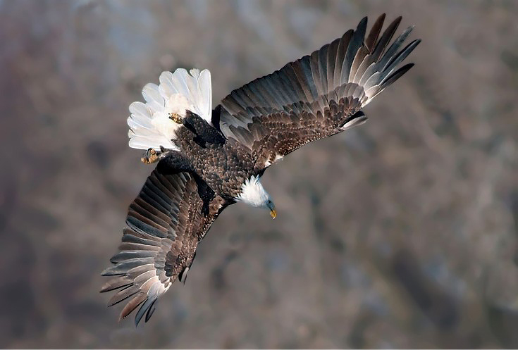 I think every bird photographer likes to make pictures of birds of prey. I know some male bird photographers who almost specialize in this. Below we have a male Northern Harrier and a mature Bald Eagle. The eagle was photographed soaring above the Wisconsin River and the Harrier was photographed at Kill Snake Wildlife Area here in Wisconsin. I have great memories of both of the days that these pictures were made.