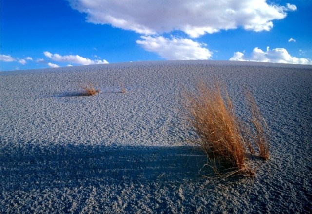 You will find that blue effect in some of the White Sands pictures in this post.  On blue sky days, when the full sun hits the gypsum sands, those sands will be white.  Hence forth….white sands.  I have previously shown you afternoon, late afternoon and dusk photos of White Sands.  Brown, gold and pink.  Well on blue sky days if a cloud covers the sun, that blue shadow will affect White Sands too. Even if the cloud is thin enough to allow for plant shadows on the sand, the color of the gypsum will cool down.  The final WS photo is an image made in the warm glow of dusk.