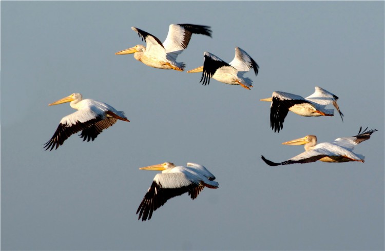 Pelicans make great subjects for photographers. They are big and not too hard to get close to. Most of all they fly in groups (usually) and they are slow flyers. All of that combined means that opportunities for people with cameras are abundant. Below we have two similar but very different pictures. In the first shot they were almost above me. I used a 500mm f4 lens with no VR/IS and manual focus. I bring that up because this photo was made hand-held. No time for a tripod here. I was outside the car and attempted to quickly position the camera/lens on the roof of my car. I fire with my right hand and hold the lens with my left. That means I focus with my left thumb. The second photo was made closer to ground level and in nicer light. I was in my car and my trusty Wal-Mart pillow was my support. That pillow has held my camera and my sleepy head for many years. It is tired and about done now, but I am grateful for all of those years of service. Who else would thank a sofa throw pillow? LOL