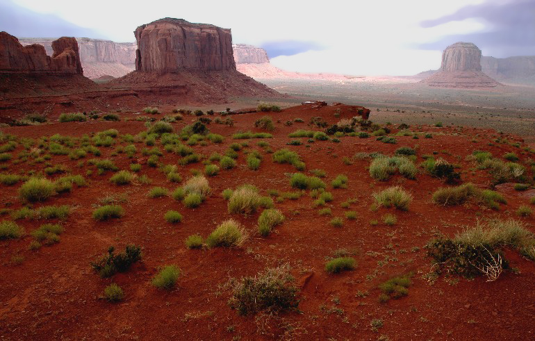 A mixture of sunshine, clouds and rain made for an interesting photo (and day) at Monument Valley, Utah/Arizona. My goal here was to make a dramatic image that displayed those varying phenomenon, by spreading out the land. I was satisfied with my results as I have been with most of the images I made at MV. It is difficult not to make good pictures here.