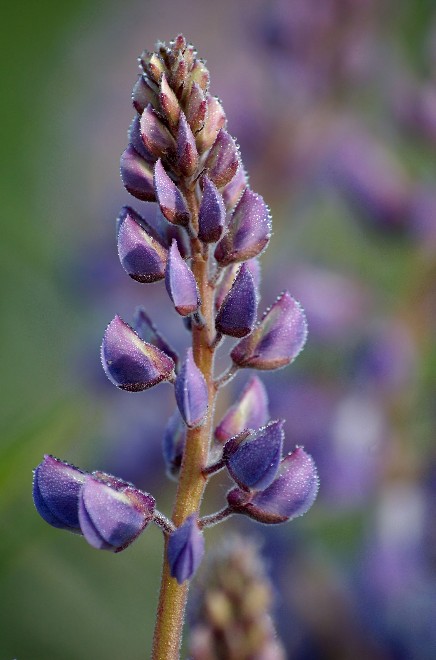 The images below are of wild Lupine. Both shots took me quite a while to find a composition where I could place one sharp blossom in front of several soft ones. The background flowers were either too close and rendered too much detail, or were not in the frame at all. Even in an image like this, I attempted to find a sort of chaotic order. For me it was worth the effort as I enjoy this style of imagery.