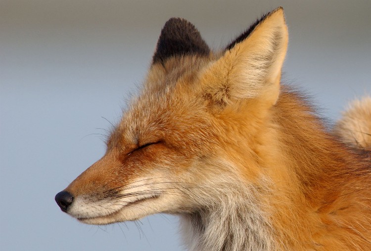 The original Foxy. This one fox helped start a four-year expedition for Wisconsin/Illinois wildlife photographers. When this shot was made she had five nursing kits in an underground (under rock?) den. She would sneak upstairs for a few moments away from the little ones and would often drift off to sleep right in front of me. Sometimes she would drift off while she was still standing. Having all of those kids (kits) are exhausting. I photographed many other foxes and I made better pictures of them, but she remains the queen of my heart.