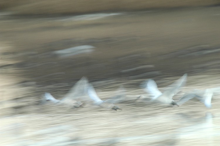 I make my share of nature abstracts using the colors of sunrise or sunset. Macros in general, and moving water specifically are also favorite abstract subjects of mine. Those nature subjects are all easy to reduce to colors, tones and patterns. I have written on several occasions that I am not the biggest fan of wildlife abstracts. I am not against them, I just choose realism with animals. It is hopefully artistic realism, but realism just the same. I do make exceptions when I am moved to do so. Such is the case below with some Tundra Swans. As is usual, the image is created entirely in camera via a slow shutter speed (1/15th ), and an intentionally slow pan.
