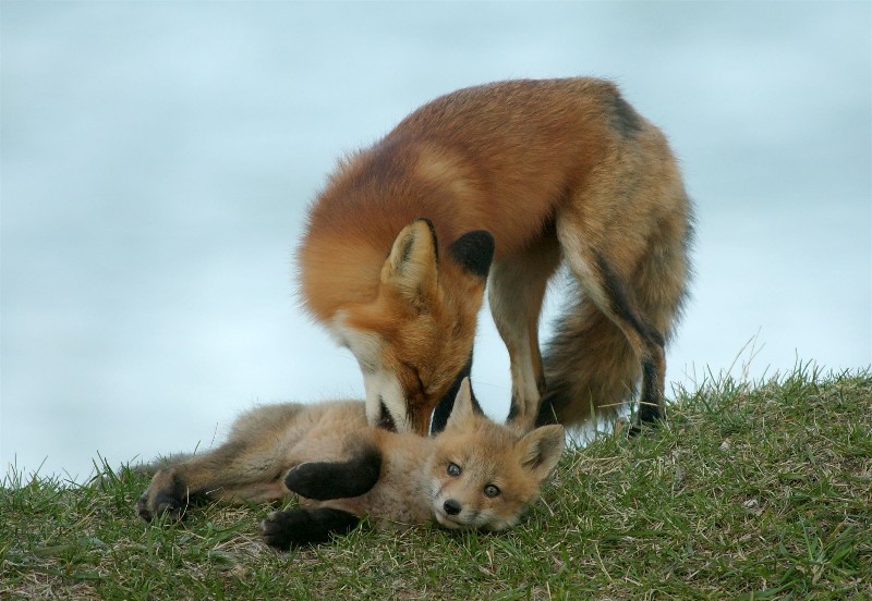 Sunlight brings us a set of new visual wonders. The contrast is higher here but that makes these older kits pop from their surroundings. The sun (from the side) also adds details to the fur and the landscape. The mood of the light here is more vibrant despite the fact that the subjects themselves are displaying a gentler less active visual than the first three pictures.