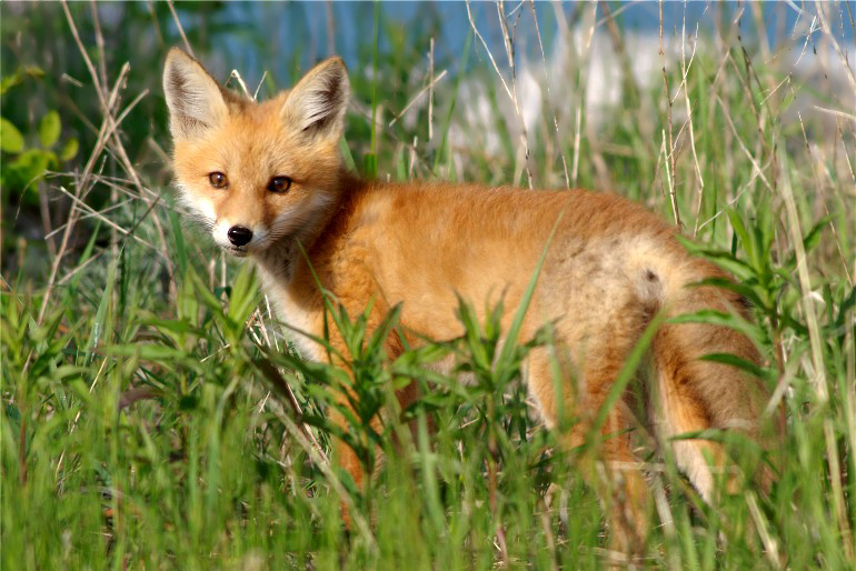 Soft light is never easy to work with when you are photographing wildlife like Red Foxes. Just the same this gentle saturating light imparts a different mood and atmosphere to these pretty creatures then the sun would. In the first three pictures below we see just how deep those reds can be with the mother fox. The difference between her and her still brown babies is obvious in a photo that saturates and deepens her color. The mood of the light (not the content of the photo) is gentle and peaceful.