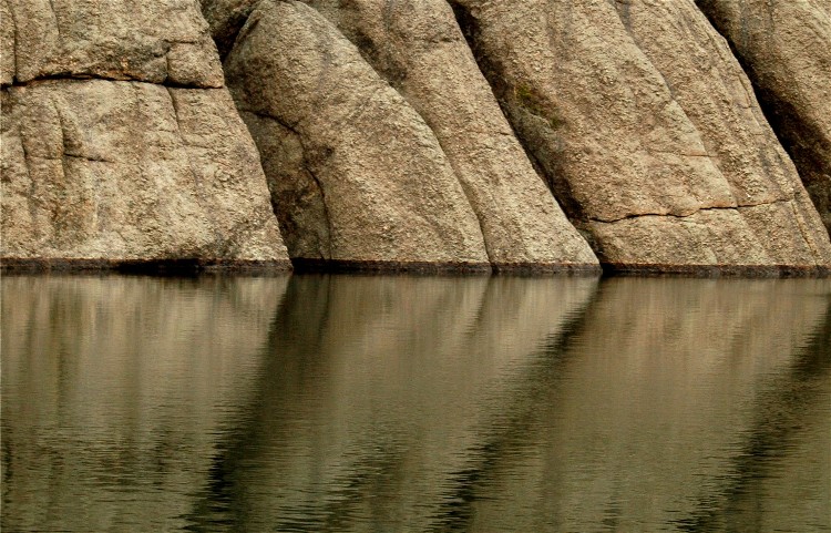 Reflections are a great artistic tool and I use them whenever I can.  While I like crisp and perfect mirrored reflections, there are many other ways to use a reflection.  I was fascinated by these rock forms in Custer State Park, South Dakota.  I love the rocks themselves but also the way most of them grew straight out of the water.  There was just enough rippling effect that I knew there would be no mirror image.  Just the same what I really loved about the rock was how they came out of the water directly, with no land mass in between.  I decided that using the somewhat muddled reflections still added some pop to the pictures.  Decisions are the very root of nature photography and that’s what keeps photographers engrossed in that endeavor for years and years.DSC_3238DSC_3236
