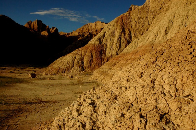I think one thing I have long ago established, is that when I am creating landscapes I love the warm light of early or late in the day, and I love the shadows that the low angled sidelight creates.  Oh yeah, I also have a thing for texture.  Of course texture is created by those little shadows that result from sidelight.  Let’s see, is there anything else I like?  I do like carefully thought out compositions that bring order out of the chaos that exists when you have low angled sidelight in an environment that consists of a variety of shapes, textures and tones.  I guess I am saying that I enjoy creating the type of landscapes that can be made at Badlands N. P. under those conditions.  Just the same, that’s a lot of decisions. DSC_3381