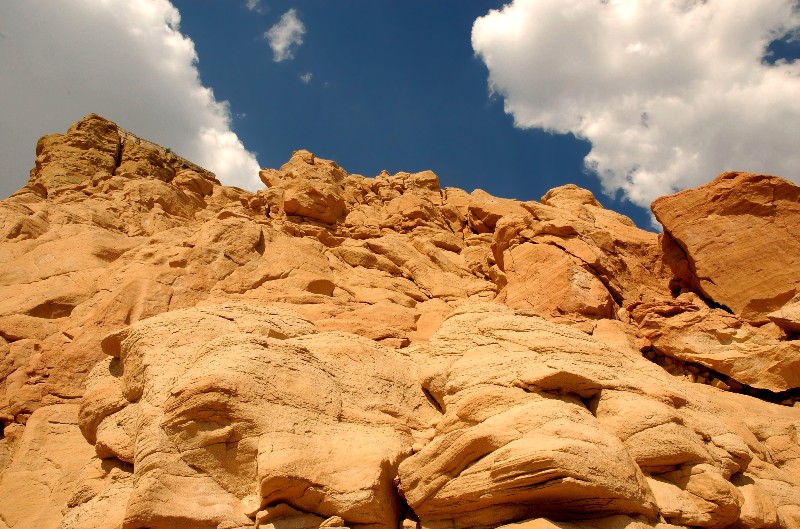 I had been making grand landscapes all day but was slowly beginning to chisel out smaller sections of rock both in my mind, and with my camera. I was interested in this rock and that sky and nothing else when I made this image. The contrasts between the warm rock, blue sky and white clouds fascinated me. Of course I was interested in the unique shape as well. This is northwest Colorado.