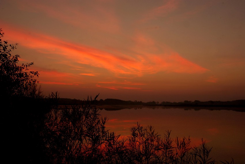 Hush….you can hear the sunrise.  I think half of making sunrise/sunset photos is about creating mood.  Even with the color of fire, these images often are quiet and serene.  The light, colors and silhouettes of sunrise need to be composed.  With this picture the division between water and sky, and how the foliage enters into the scene, are not accidents. Color is not the only thing that makes the finished picture.DSC_2990sharp
