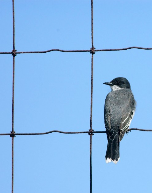 It’s fun to sometimes treat nature, especially wildlife, as if they are part of a geometric design. Not literally of course, it is just a visual thing. The best way to do that is by using manmade objects as part of that design. Despite all those lines, they are organized and this image remains, clean and simple. The bird is an Eastern Kingbird. The image has never been shown before.