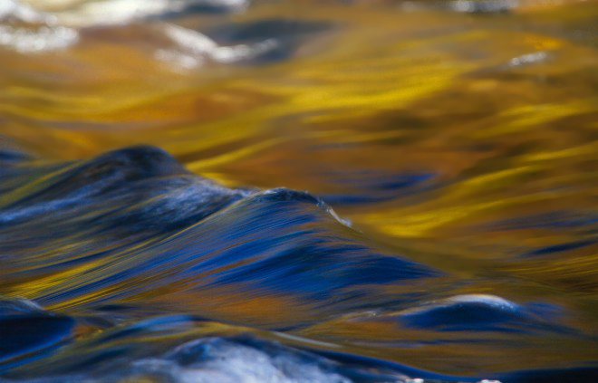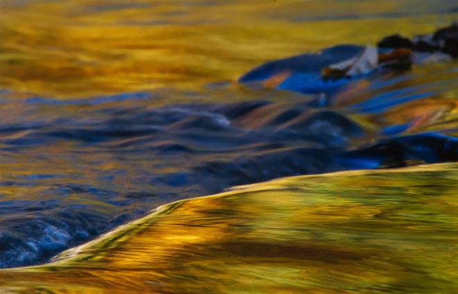 The images below were made with film and without filters. I did nothing out of the ordinary in the digital editing of my copies. No saturation or selective color additions. This is a stream reflecting autumn colors and other natural items. It is partially in the sun and partially in shade. I was attracted to the contrasting colors and the movement of the water. Sometimes we just need to be willing to color outside the lines….so to speak.