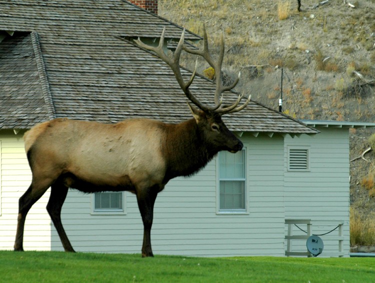 Yellowstone is made up of a series of small villages designed for visitors. There are a lot of elk in Yellowstone and they occupy the wilderness and roadsides, but sometimes they also occupy those villages. The final two images below were made in Mammoth Springs Village.