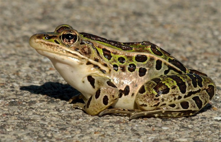This adult Leopard frog was on the auto trail road at Horicon NWR here in Wisconsin. I quickly got out and sprawled on my belly in the road. I took my trusty Walmart throw pillow with me to act as a tripod. After three shots, I spotted a car headed our way so I gently urged the frog off the road. As those who frequent Horicon can attest to, after a warm rain at the right time of year, young Leopard Frogs migrate, filling every road at the marsh. It is truly impossible not to kill frogs, so eventually I just omitted traveling those roads under those conditions.