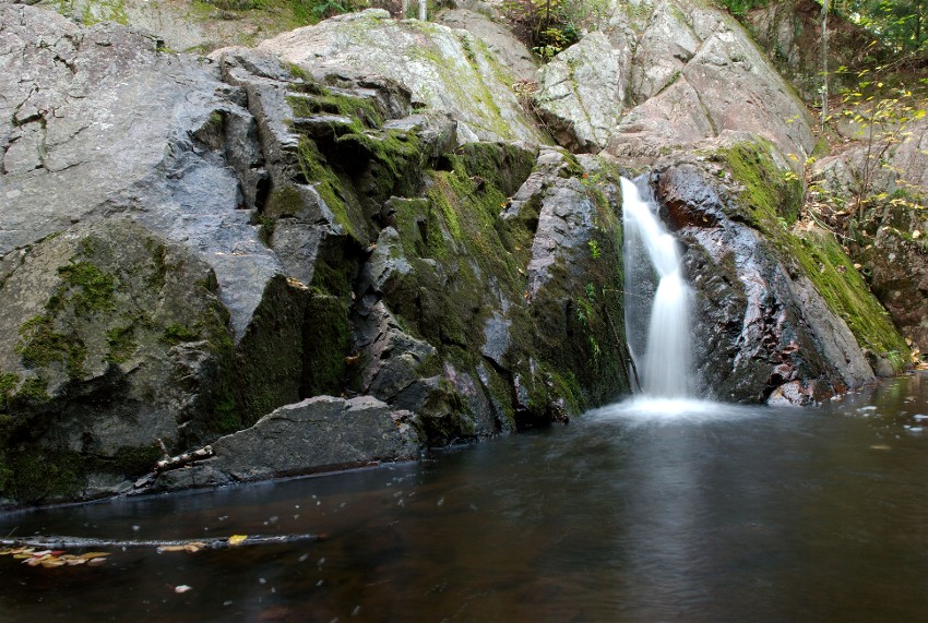 I thought I’d show a somewhat different view of Morgan Falls (in Wisconsin) than I normally show. The falls looks so tiny in this shot. It was made in fall which usually means minimal flowage. I have shown other (spring) pictures where every inch of rock has water falling over it. There is indeed 80 feet of falling water above the falls, but you cannot see it in this shot. It is a very thin ribbon of liquid. The water trail breaks to our left as we look at this image, and disappears behind some rock. Seasonal variations are among the things that make waterfalls interesting.