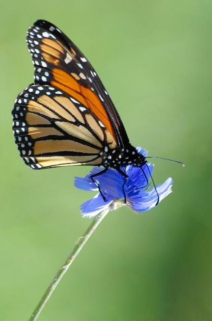 I have been blessed ever since the day that I decided that close-ups/macros would be a large part of my photographic life. Macros can be a part of your photography/exploring in every single season, and on each and every day of those seasons. When other photographers stayed home because of the weather, or went home disappointed because of their failure to find a suitable subject, I was crouched down in front of a colorful insect, or a flower, or a wild mushroom, or a simple pattern on a rock. With open eyes, and open mind and a willing heart, your subjects are endless. Below is a wild Prairie Smoke flower and a very common Monarch butterfly resting on an equally common Chicory flower. The final macro shows patterns of lichen.