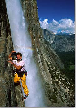 I’m going to dig into the past today, but not my past. I’d like to share a few images from the late/great adventurer and photographer Galen Rowell. His Mountain Light Photography still lives today. He redefined how we look or at least think about light. If anyone doubts that he was the ultimate adventurer/photographer, that is indeed Galen on the side of that mountain in our first picture today. All of his images below were made on 35mm slide film. Other than the use of graduated neutral density and polarizing filters, his work was straight forward. He used a mixture of exposure, composition and being where he needed to be when he needed to be there, to accomplish what he did.