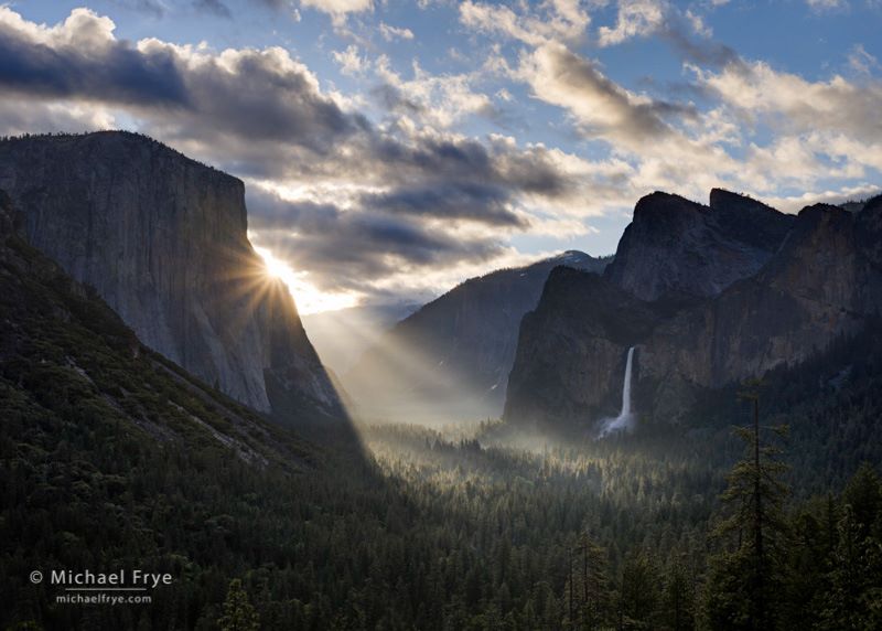 This Michael Frye landscape appears to emanate from Yosemite N. P. I love those shafts of light entering the valley. Places like Yosemite have been photographed so many times that I think I will never again see anything new. I am continually wrong. Notice that unlike many of the landscapes you see today, this image is not dripping in color