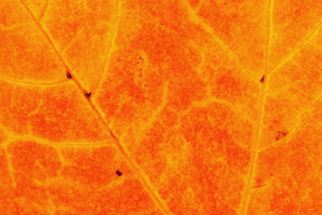 To me photographing autumn means a lot of different things. One of those things has been (since about 1978) making close-up images of fallen leaves. I loved the shocking colors of this leaf. I composed the veins carefully but they are not very striking or even noticeable on this leaf. I found that the small black spots actually added some visual stimulation to my image. Once again nature aids the photographer.
