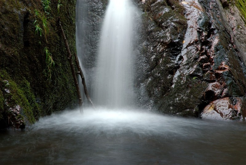 With our final image we are beginning to see what this falls meant to me on the day I made these pictures. The falls gains power. The contrasts of black rock and green moss become more apparent. The waterfall almost seems to be illuminated as it stands out from the dark rock.
