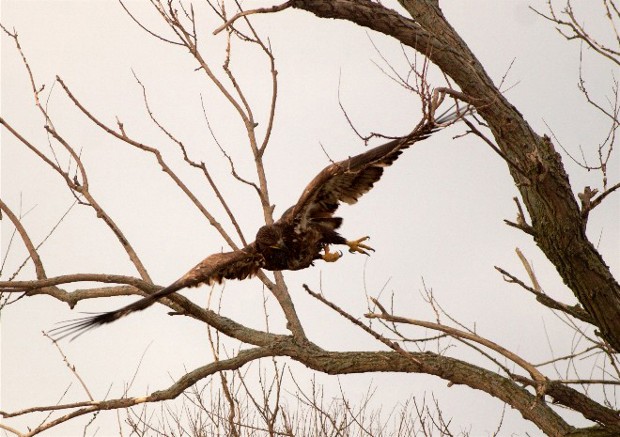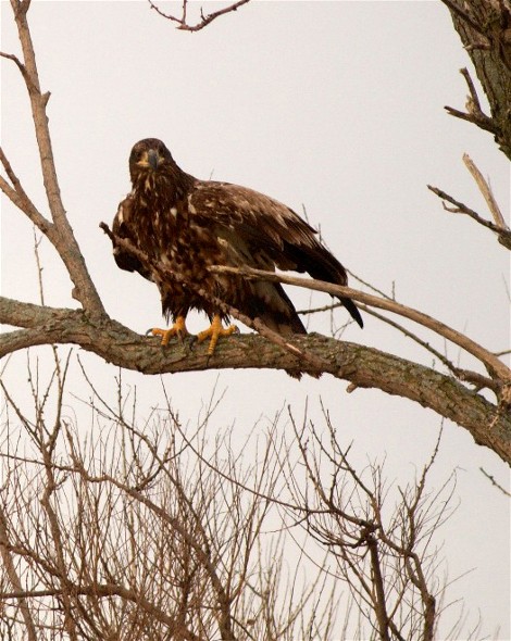Like a lot of photographers, the pictures I don’t show due to technical concerns often include interesting subjects. This picture of an immature Bald Eagle was made back in 2009 at Horicon Marsh NWR, at the end of Federal Dike Rd. The image was actually made just before sunrise on a day with no sunrise. In other words, it was a cloudy day and early in the morning. Other than a small crop I have never “fixed” this picture in the editing process. The sky has that washed out dead look and it is a busy image as well, but sometimes putting a subject in the context of its environment is worth the clutter. I have made no adjustments to the actual birds.