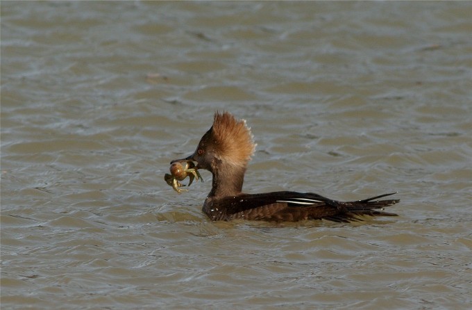 Let’s finish with a female Hooded Merganser. She was in the process of looking for food and she wound up with a crab breakfast for her efforts. I thanked her and headed for home.