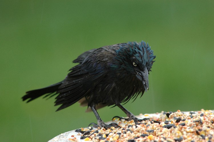 I recently came across this image of a very wet, and apparently miserable Common Grackle. I made it in my own backyard in 2007.