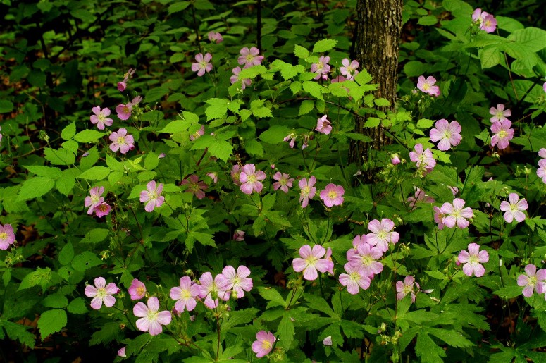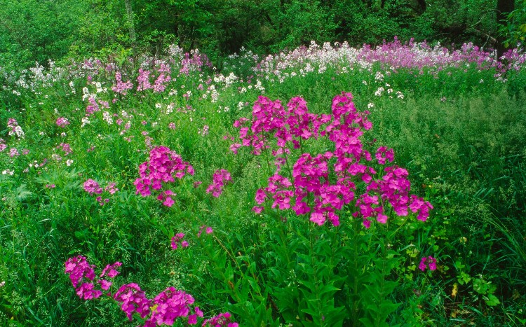 Using flowers in landscape photos is a time-honored tradition. The first picture below would be an okay shot of spring greenery even without the Phlox, but it is the flowers that make it pop. I of course, composed the flowers within the scene as well as I could. My imagination had them arranged a little differently than this, but Ma Nature has her own ideas and she is a better artist than me. The images below slowly cease to be landscapes with flowers, and move on to be flowers in a landscape, and finally mini flowerscapes.