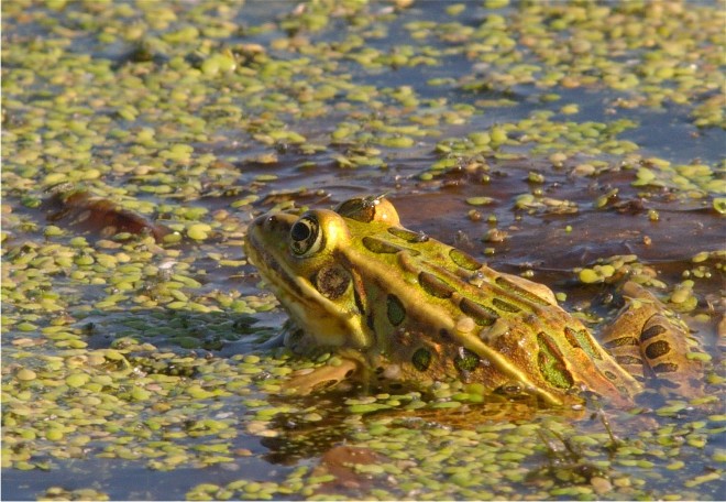 Wildlife presents us with plenty of compositional problems, as well as light. I could have attempted to get in the water with this Leopard Frog for a front view picture. I have done that before. There are some problems with that. First of all my waders were at home and I really didn’t feel like taking a river bath on this day. Secondly, this is the Rock River at Horicon Marsh NWR and there is a drop off near this frog. Most importantly, my subject would have been almost back-lit instead partially side lit. I made the best composition possible under the circumstances. I used the power point/rule of thirds concept and was satisfied that I had done all I could.