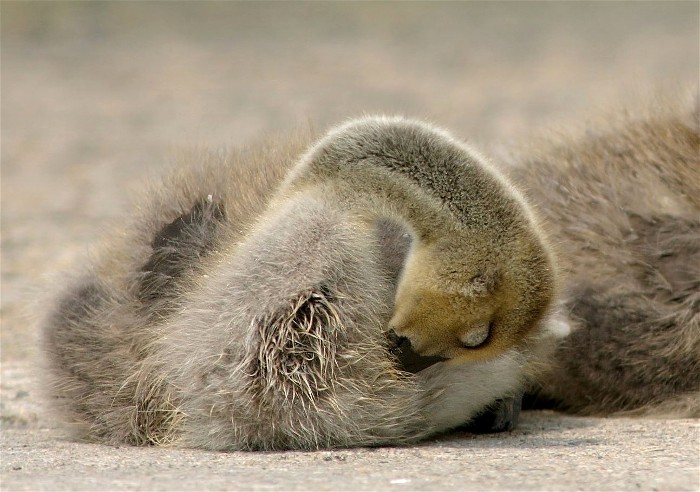 Cleanliness. Canada Goose Gosling preening.
