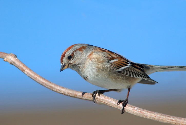 There are a lot of Sparrows in the world and I know many photographers who only photograph the rarest varieties. The American Tree Sparrow is a pretty common sort in these parts, but I find them elegant, not so much in their appearance but in the way they move. This was made on a pretty winter’s day, and that combined with the clean and uncluttered background, elevates the image beyond that of just another shot of a common bird. For me that is.