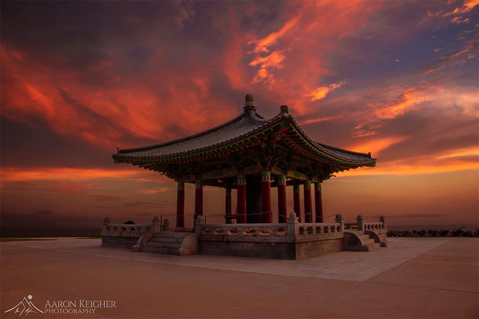 I love the simple quality of this image made by Aaron Keigher. This is likely an HDR image which explains the ability to retain some foreground detail while holding the deep beautiful colors of sunset. The even light on that foreground structure would tell me that a graduated neutral density filter was not employed. The location is San Pedro, CA