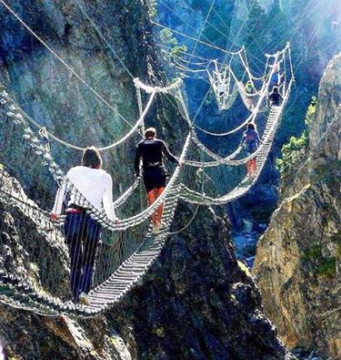 The long road home. How would you like to have to walk this bridge to get home? This image comes from Hostelling International and was made in Piedmont Italy.
