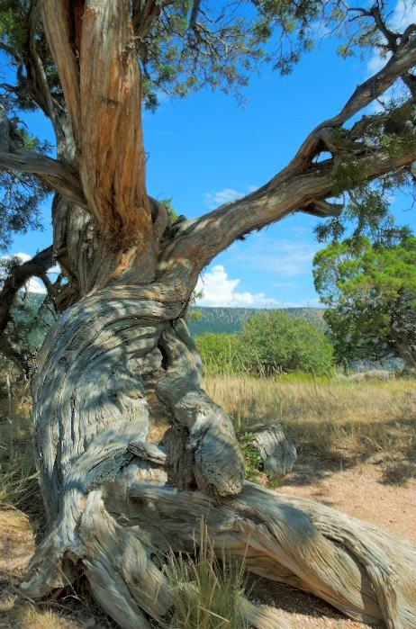 This gnarled old tree was found in the Black Canyon of The Gunnison in Colorado. The original shadow marred image that I created, was missing too much detail due to those shadows. My picture did not display the twists and turns of this very old tree trunk. My solution was to make (at home) one overexposed copy, and one underexposed, and then combine all three in an HDR software program. HDR imaging does not have to mean over saturated sunrise/sunset images. It serves the purpose of revealing details in order to make images of natural history subjects as well.