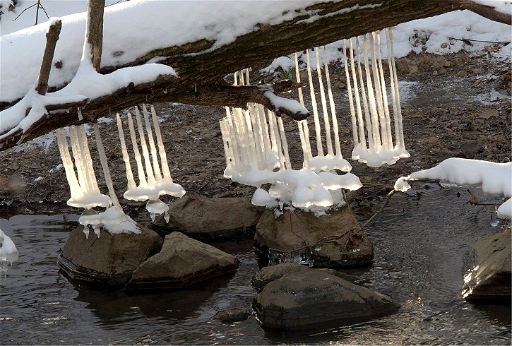 Ice close-ups were a favorite of mine. Whether they were a sort of organized chaos like in our first image below, or simpler like the second, or even more simplistic like the third. Dress warm, wear moisture blocking clothing, set your tripod down low, get on your knees, and be ready to have a visual delight.
