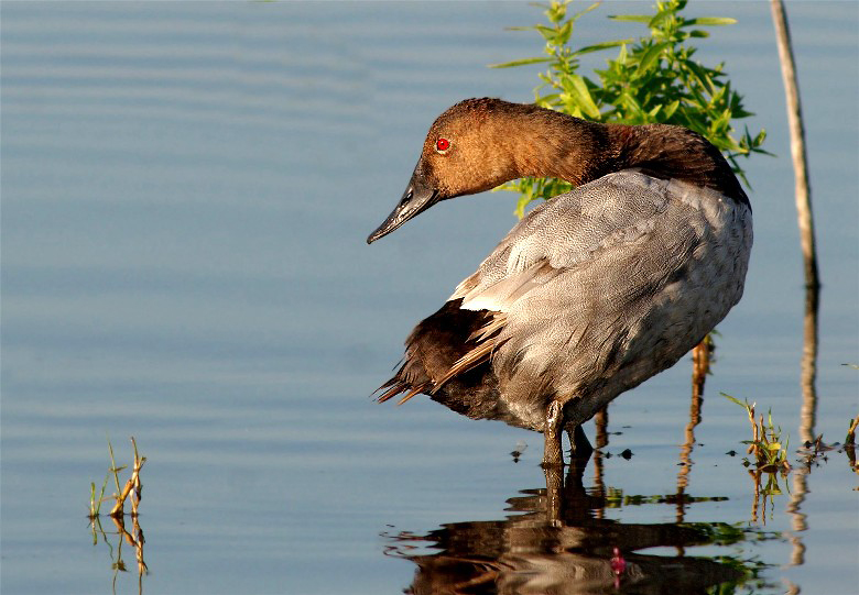 Then again! This male Canvasback Duck looked funny (minus tail feathers during the molt), and posed like he had spotted a duck he did not like.