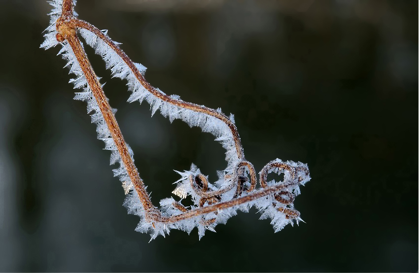 Frost is a delight for nature photographers. This frost covered a delicate but twisted little branch and I was glad it did.