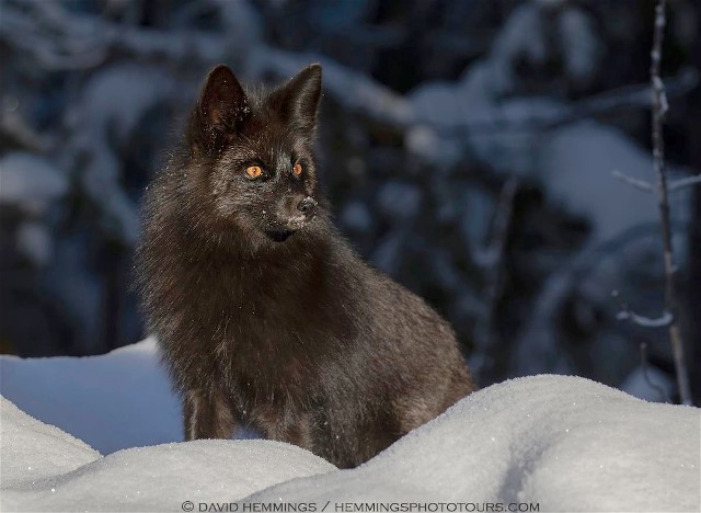 This second image is from wildlife photography superstar David Hemmings. I believe David resides in Canada and that gorgeous Silver Fox was found somewhere near David’s home. Lucky guy! Of course it helps to be a great photographer. The low winter’s light on the background, along with that beautiful winter sun illuminating the subject, makes this photo extra, extra, special.