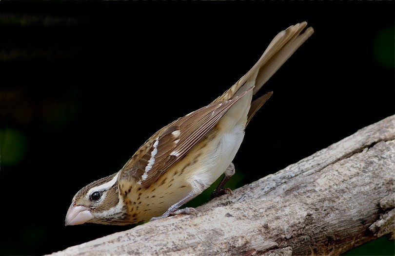 As spring advances, so will those species that have farther to migrate. Such is the case with this “show off” female Rose-breasted Grosbeak. The background was the distant interior of a woodland. My exposure, which was taken in the area which was in the light, forcing the dark areas to be underexposed, and the cloning out digitally of two obnoxious plants that carried some bright highlights, is what made for the unobtrusive background. A little bit photography 101, a little bit of photographic know how, and just a touch of digital wizard work.