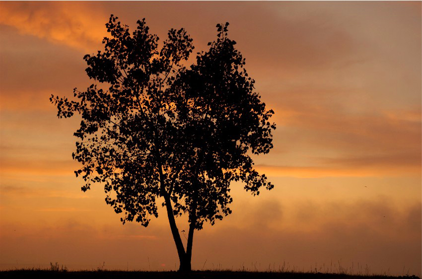 A tree, a slight rise in the land, and sunrise or sunset. Images like this are available to everybody, and they present themselves often. Very often. We just need to be there and be ready.