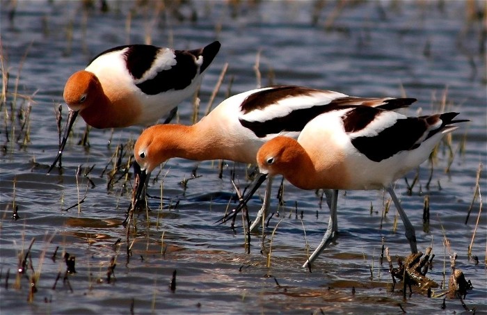 The first thoughts that come to mind when I make a photo of three critters together like this, is Moe, Larry & Curley. The product of a misspent youth I suppose. My mind however wanders on when the subjects are three beautiful American Avocets “working a pond” in New Mexico. Maybe teamwork but likely togetherness is the word this scene evokes for me. Side by side, one for all and all for one.