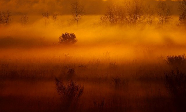 Bands of light and shadow during a foggy sunrise, make this prairie scene almost surreal. Some scenes are so moody, that the best we can do is while using composition, move out of the scene any factors that subtract from what we have been provided with naturally. The backlight, is the essence or the body of this picture. It paints the tones into the image that provide the mood.