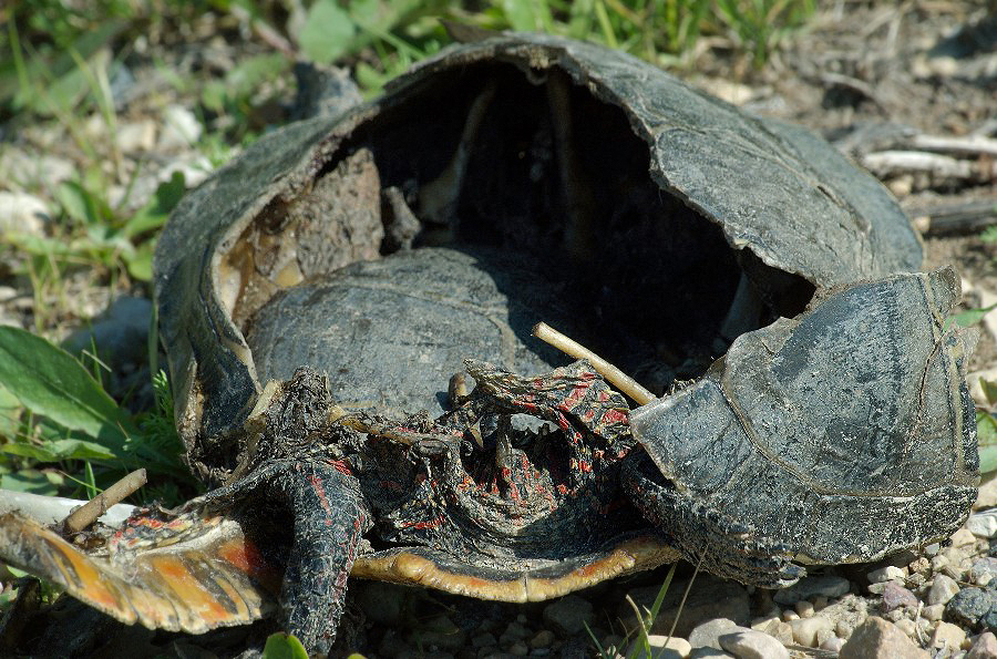 I believe but cannot prove, that this turtle was run over by a car, and subsequently much of it was devoured by other animals. Maybe it had badly decayed first, or maybe not. I always made images of such when they presented themselves, because somewhere, someone may be able to make constructive use of them.