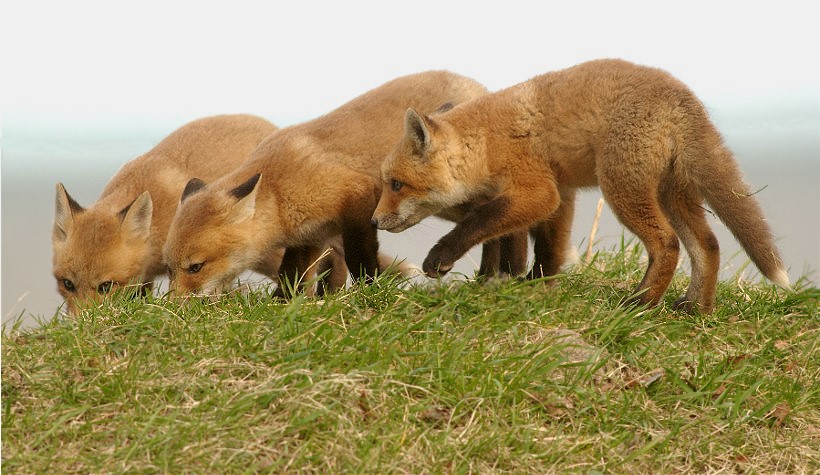 I have shared this delightful (if I could be so bold as to say) image of three kit foxes practicing using their noses to find stuff, before on at least two occasions. I have shown it un-cropped where the kits were in the middle of the picture frame and somewhat smaller, and I have shown it with the kits this size but in the bottom of the frame. This is by far my most impact full composition. They occupy most of the image left to right, and we are at eye level or a little below them instead of looking down at them. I made this image many years ago but we keep on experimenting and learning.