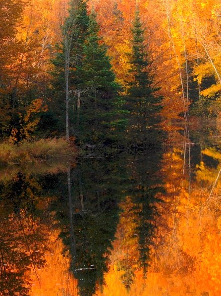 Reflections in still waters can be so intense with certain subjects, this one being autumn trees in Morgan Creek in Wisconsin’s Chequamegon National Forest, that they can almost become surreal. This is as straight forward of an image as possible. My job was to compose what I found, and this was what came of it.