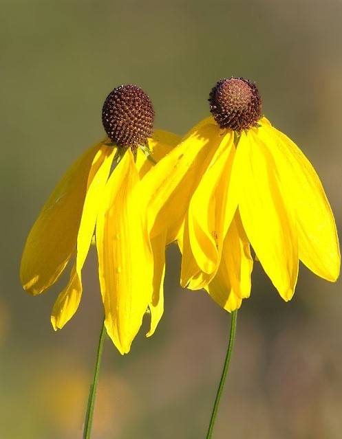 These Prairie Coneflowers have beautiful wisps of color and shape in back of them. Enough to have a secondary interest, but doing so without competing with the flowers, as they are soft and out of focus.