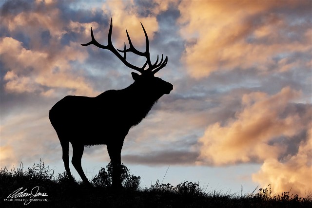 Adam Jones made this powerfully symbolic image of an elk at sunrise or sunset. He created the photo in Yellowstone N.P. and it could easily be the “signature” image for representing that location.
