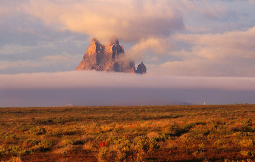 This rock formation is found in New Mexico. It is called Shiprock and it was used by many western travelers including wagon trains as a landmark as a means for keeping track of where they were.
