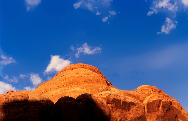 Notice the color contrast between the cool blue sky, and the warm Sandstone rock. Not to mention between the smooth sky and the textured rock.